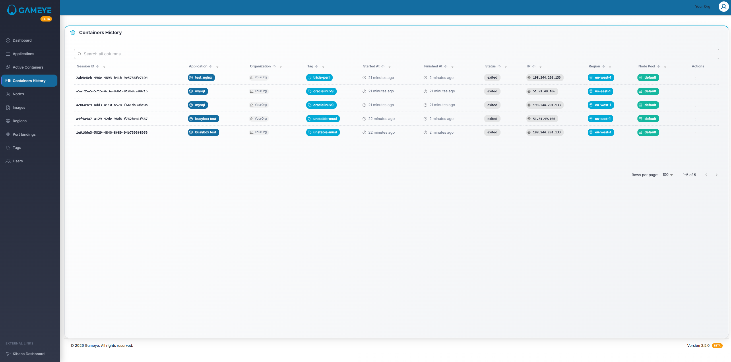 Section titled “What you see”A table of historical container entries. Exact columns depend on your environment.
