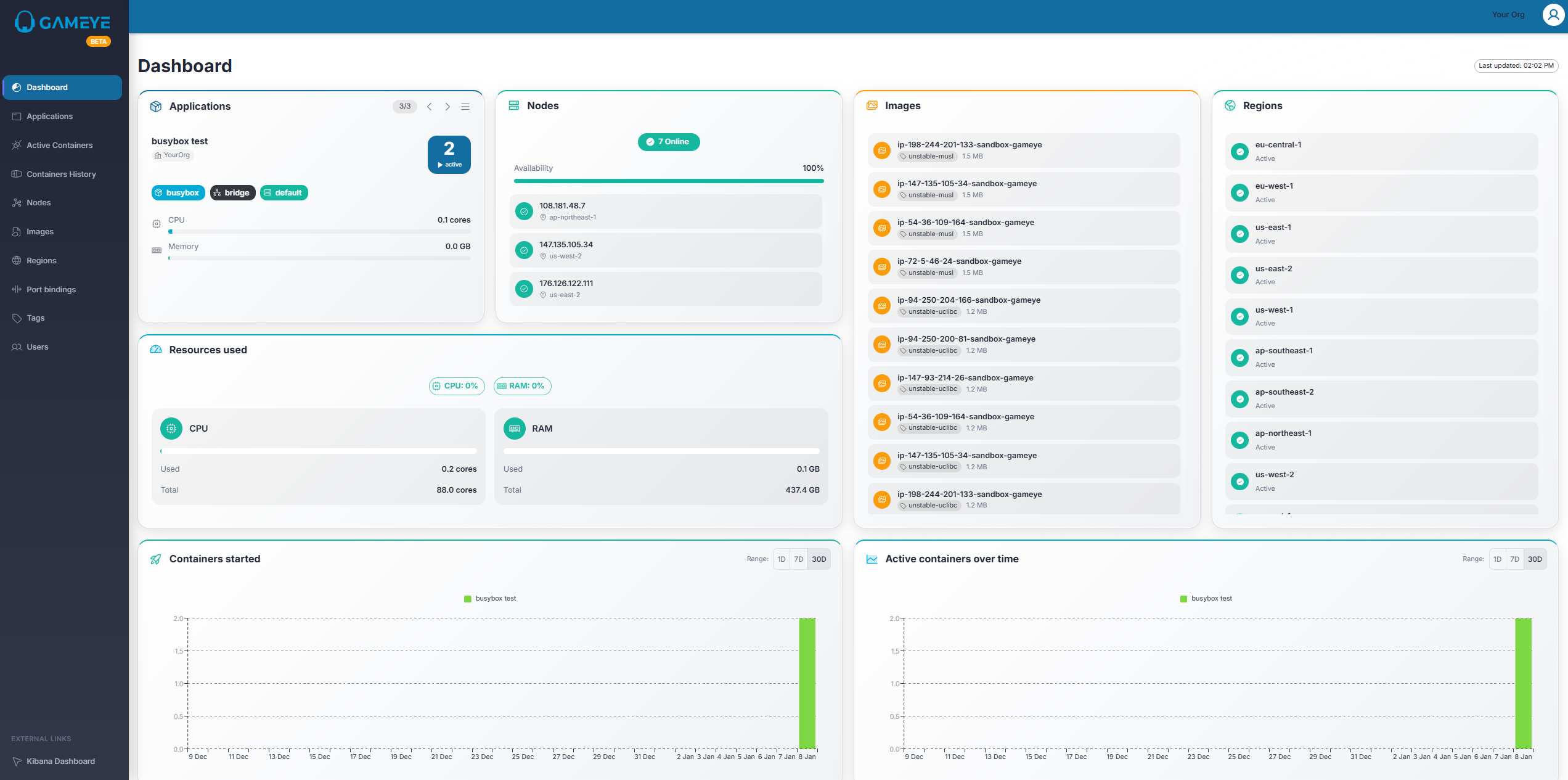- Regions card: Regions overview.